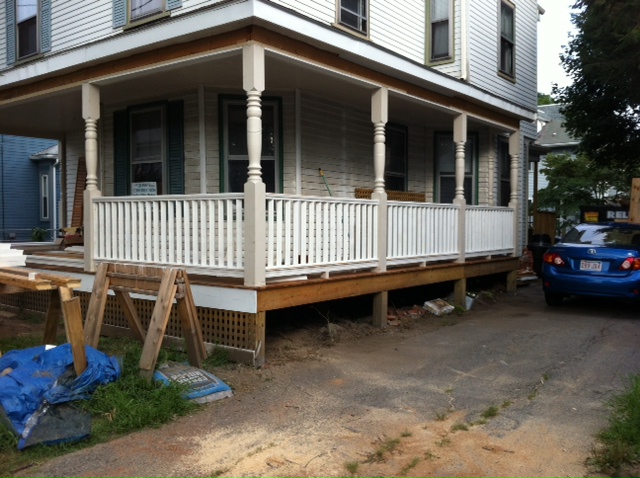 Oh, I almost forgot to tell you! The porch guys started on the posts and railings last week. It looks amazing!