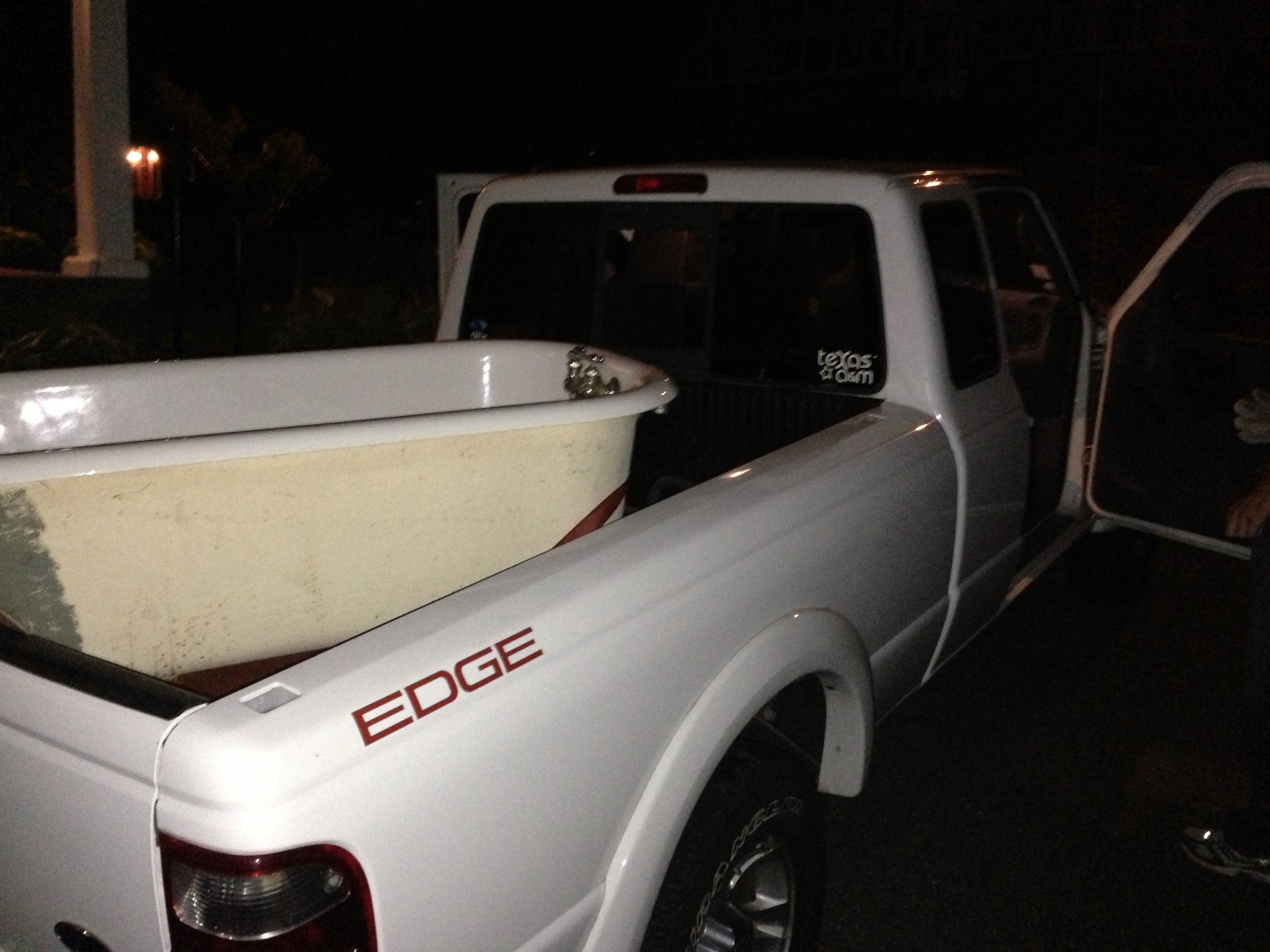This 5′ foot tub was found on the town mailing list. The owner was renovating a bathroom and listed it as free for pickup. We happen to have a truck which allows us to really grab these great finds. We grabbed a couple friends and grabbed it. It is currently living in the shed. It’s heavy heavy heavy and the 3rd floor bath is a project for next year. $0 for a $1000+ tub is worth the cost of storing it though. Score!