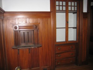 We recently demoed the kitchen and took down this ugly fake wood 70s paneling that had been painted pink at some point. It was chair-rail height and had been glued directly to the drywall. The consequence is that we now either need to replace the drywall where the glue pulled off the drywall or we need to cover it with some new paneling. The dining room has beautiful chestnut 3/4 paneling.