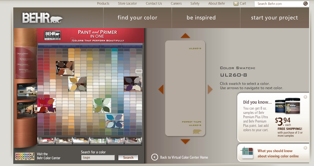 The paint happens to match the taupe in the bedspread perfectly which these digital color samples fail to show.
