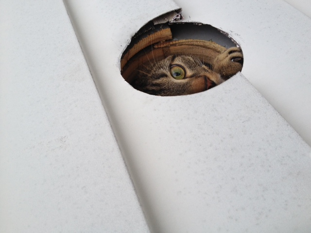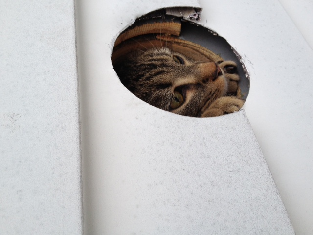 Vector really liked hanging out up in the ceiling. Given the option of being a ceiling cat or a basement cat, he’s definitely a ceiling cat.