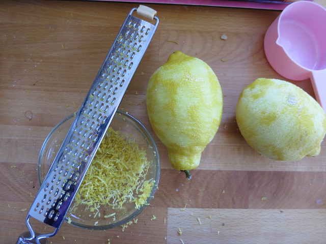I also zested 2 lemons and squeezed half a cup of lemon juice. A good zester is another great investment. I love my pink one.