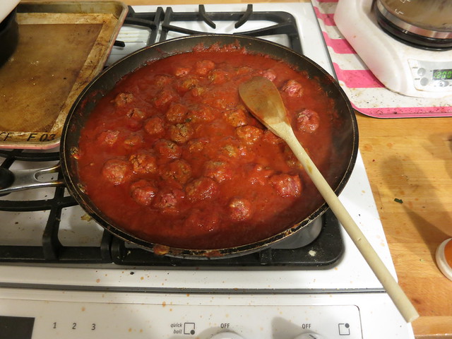 After I cut the pasta, I had a nice mound of it, perfect for 2 people. Way more meatballs than pasta but they are great for leftovers.