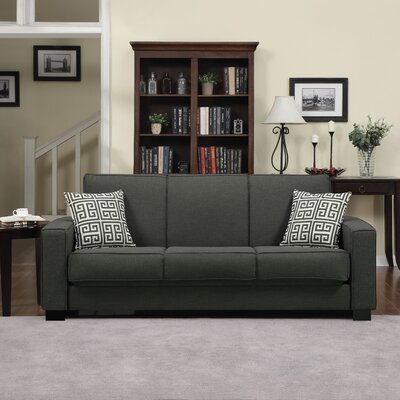 Puebla Convert-a-Couch Convertible Sofa Color: Smoky Charcoal Gray Linen / Greek Key