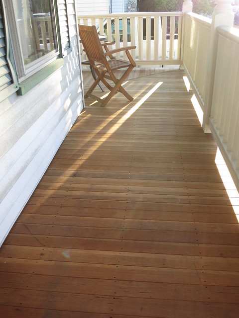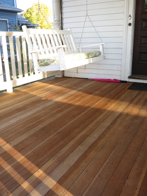 The Porch floor was in rough shape. I’m not sure why it was so bad but I think the Thompson’s Water Seal we used to seal the deck never fully absorbed and the dirt stuck into it. Maybe we put it on too thick. I’m not sure. I think we’re going to switch to a different sealer product. Or we should probably hire professional deck sealing service to do everything properly. I was advised to check out this site for reputable contractor.