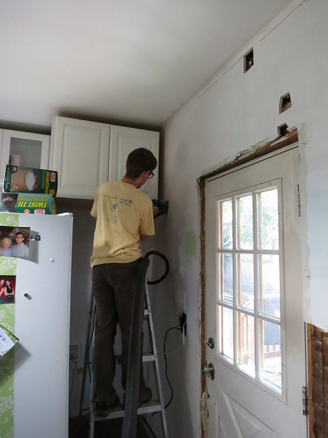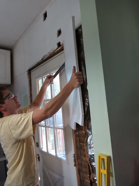 Then cut away the drywall (thank goodness it was drywall and not plaster and lath…I love drywall soo much!). We used the Roto-Zip and a drywall bit to cut it into manageable size pieces.