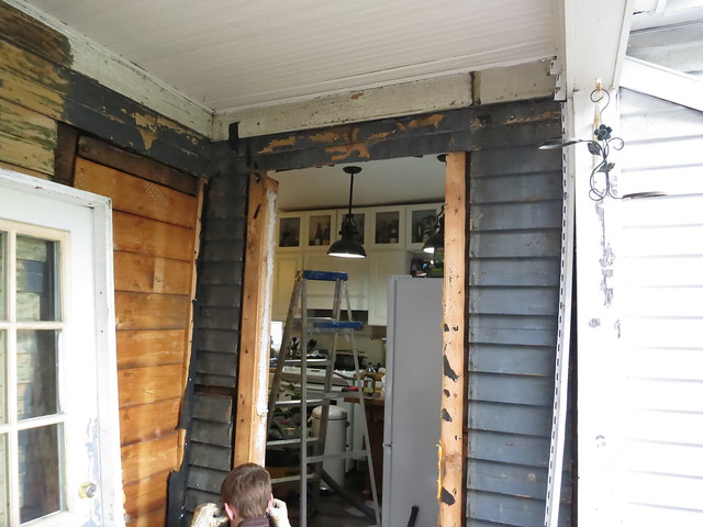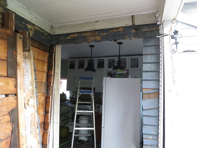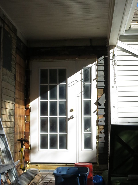 The next day, we pulled off the aluminum siding on the outside of the house and pulled the old door out frame, threshold, and all. And it got cold…real cold, thankfully the andersen replacement doors in cincinnati oh company was there to help us out.