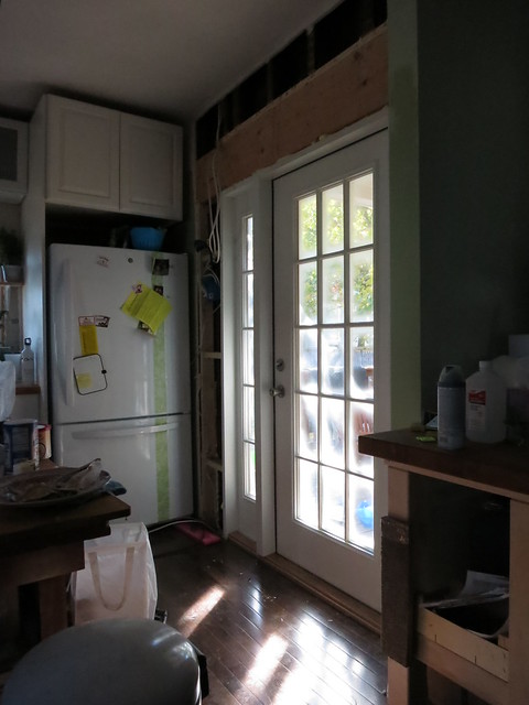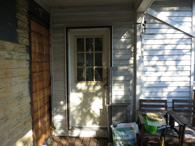 Love the door and how much light comes in. You will be glad you did this project. And it should be more insulated as well.