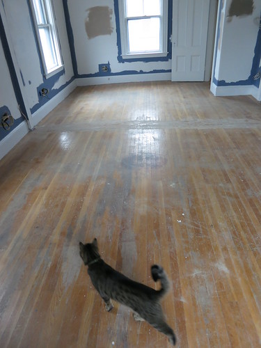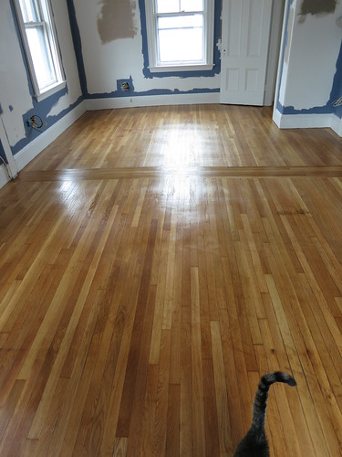 I am soooo happy about the floors. There are still stains and marks here and there but the floors are 100 years old…they should have marks here and there! There are some tale-tell signs of a poorly trained dog in the form of dark water stains here and there but other than that, the floors are in great shape, better shape than I though they were before the refinishing.