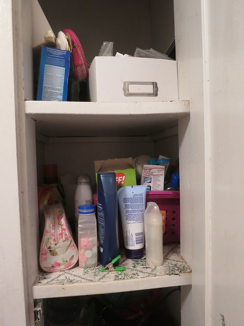 with the bottles and often used stuff (bandaids) in this box on the second shelf.