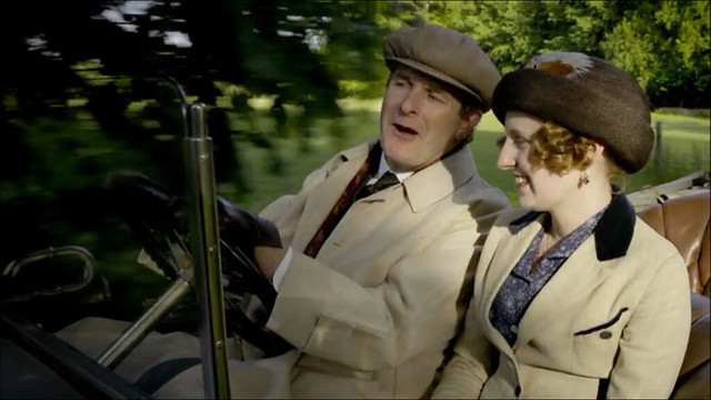 Sir Antony and Edith go for their drive in his “Open Rolls Royce” and Edith sports cute hair, a cute hat, and the most darling linen jacket. I’d have to have a ladies maid just to keep it ironed but it is a beautiful coat.