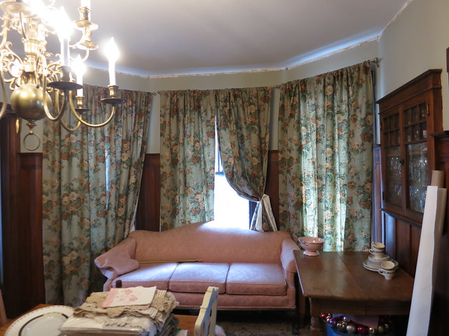 I’m thinking some tan satin tie-backs are just the thing for these windows but I’m open to suggestions. Tassels? Metal hooks?