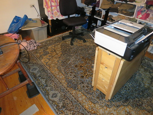 We’ve gotten 2 $50 rugs. One great green synthetic rug that is still rolled up and this great blue rug in our messy bedroom.