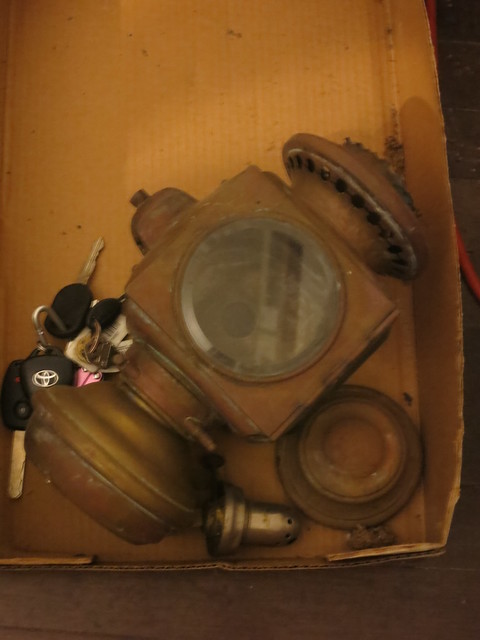 It’s some sort of gas auto lantern. Either for a car or a stagecoach of some sort. Think a gas headlight. Soooo cool!