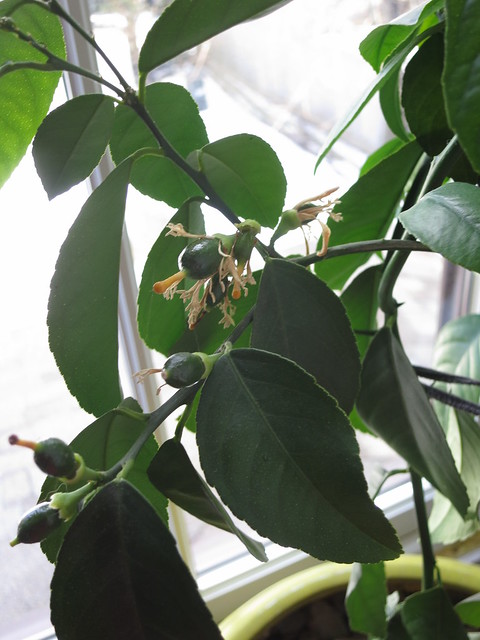 He grew a bunch this winter. I think he really likes being full in this sunny window. There is one long branch that may need to be pruned but tying everything to a stake seems to have really helped him maintain his shape, I also add some Ornamental plants to add some decoration to the room. I can’t wait to see if those lemons reach full size!