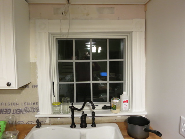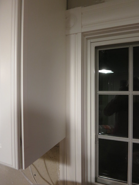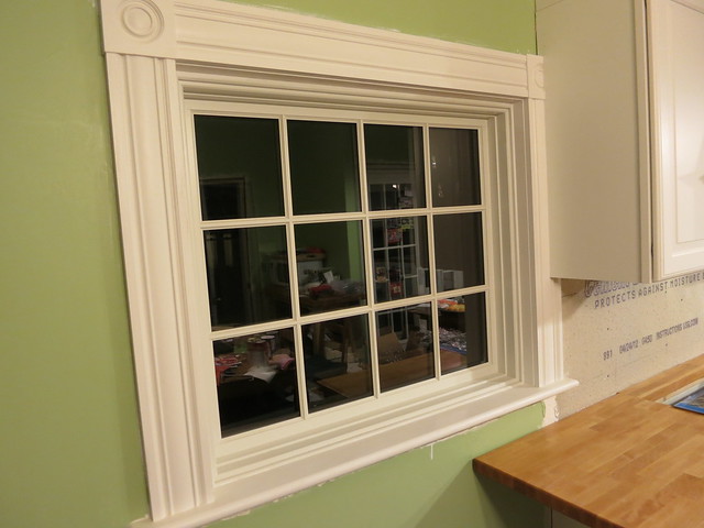 The notched and trimmed moldings look fine and Vector LOVES his kitchen window sil.