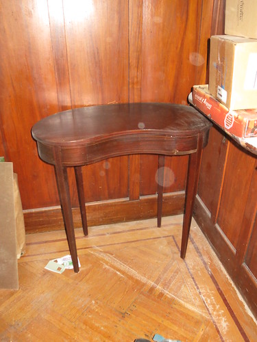 As far as side tables, I’ve got a couple options.  I bought this great kidney shaped table for $20 in New Bedford.