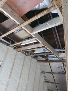 Let’s start top-down. The 3rd floor is looking good. There is still a bit of trash that needs to be hauled out but there is a new window, strapping on the walls, and the ceiling has been appropriately neatened and readied for drywall.