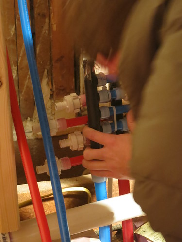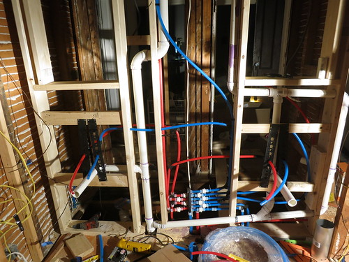 We got the first one done on Saturday afternoon. It took a mid-project Home Depot run to get a hole saw the right size but we managed one. It started to get dark so we put up shop and worked on an “indoor” project that evening. We were going strong until nearly 11 o’clock. But, we got the water supply done in the bathroom. Pex-tastic, we will see if can finish the project completely. We got help from the First 4 Plumbing on plumbing issues at home.