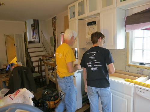 While Stefan and I were at work on Friday, they managed to get lots of other miscellaneous stuff done. The dining room is nearly cleaned out, the den is organized and swept clean. Ann is a cleaner so she went right to work straitening and organizing. Like me, she much prefers jobs where she can step back and see the improvement when she is done. So, while Fred insulated the kitchen ceiling, she was at it getting things looking MUCH better. It always seems like cleaning is low on the priority list when we have so much to do but it helps maintain a positive state of mental health that is so important to maintain motivation on a big project like this. I’m glad Ann had the foresight to see the need and take it upon herself to get things down to a milder state of chaos.