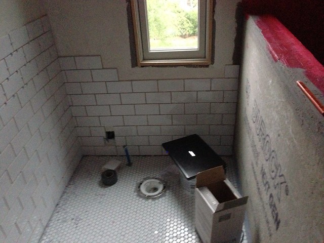 I’m still waiting on some window trim before I can finish up the wall behind the toilet.