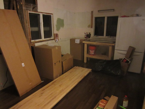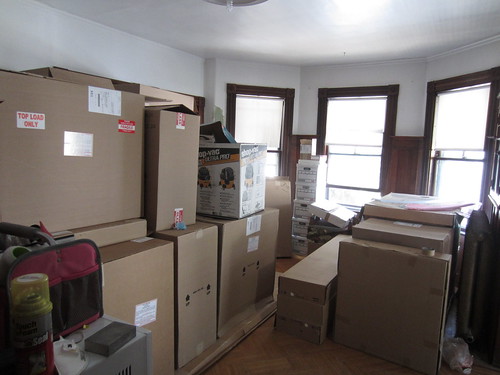 The place is really coming together. The dining room is the “goods” warehouse. I’ve got all the cabinets in there as well as all the ikea furniture and the range and dishwasher are stashed in there until we need them.