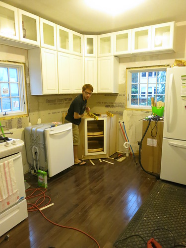 Sunday we did the last bit of backer-board installation and worked on a few more cabinets. It’s really coming together but between the shimming and the endless number of things that can and do go wrong, we’re happy with our progress and excited for the final product.