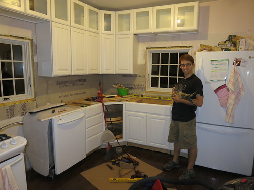 Last weekend we were in Saratoga Springs for some much needed R&R and nieces and nephews time. This weekend, we were back at it doing some kitchen cabinets. I was hoping that we would get all the base cabinets in on Saturday and spend Sunday getting the countertops and sink in. Not to be.